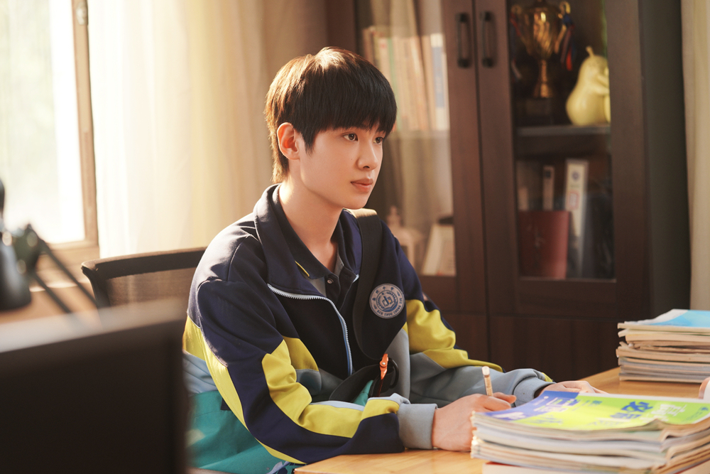 黄明昊:首先是反差,因为他一会儿调皮,一会儿又很可靠,是一个反差男孩,虽然有时闯祸,但是需要沈明辉站出来的时候,他就会义无反顾。第二个词是可靠,他事事为姐姐打算,看不得她受委屈,后面慢慢成为了可靠的小男人。第三个词是财迷,别人在那边做数学题,他在核算毛利率,蛰伏高中五年,就是为了把沈家大排引进到学校。