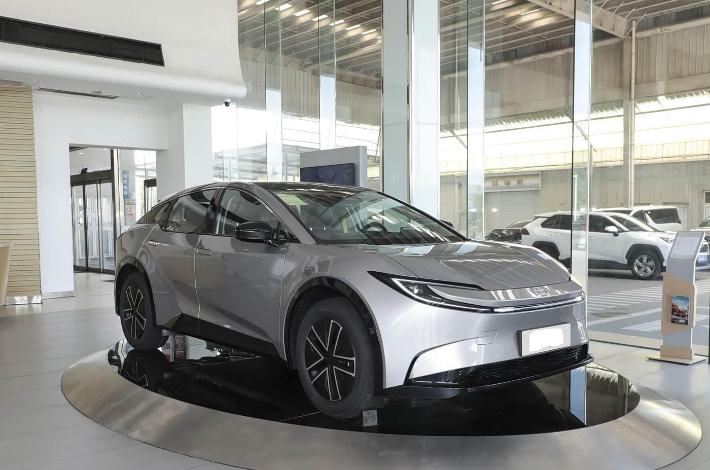 我们首先来看新车的外观设计方面,bZ5的前脸设计堪称颠覆性突破。采用“锤头鲨”造型理念,贯穿式LED灯带与C形日行灯形成立体视觉矩阵,搭配封闭式格栅和棱角分明的筋线设计,营造出强烈的攻击性。高配车型配备的激光雷达与摄像头阵列,不仅提升智驾能力,更让车头科技感倍增。21英寸轮毂的低风阻设计,进一步强化了整车的运动基因。这种设计语言一改丰田传统的中庸风格,精准击中年轻消费者对个性化表达的追求。