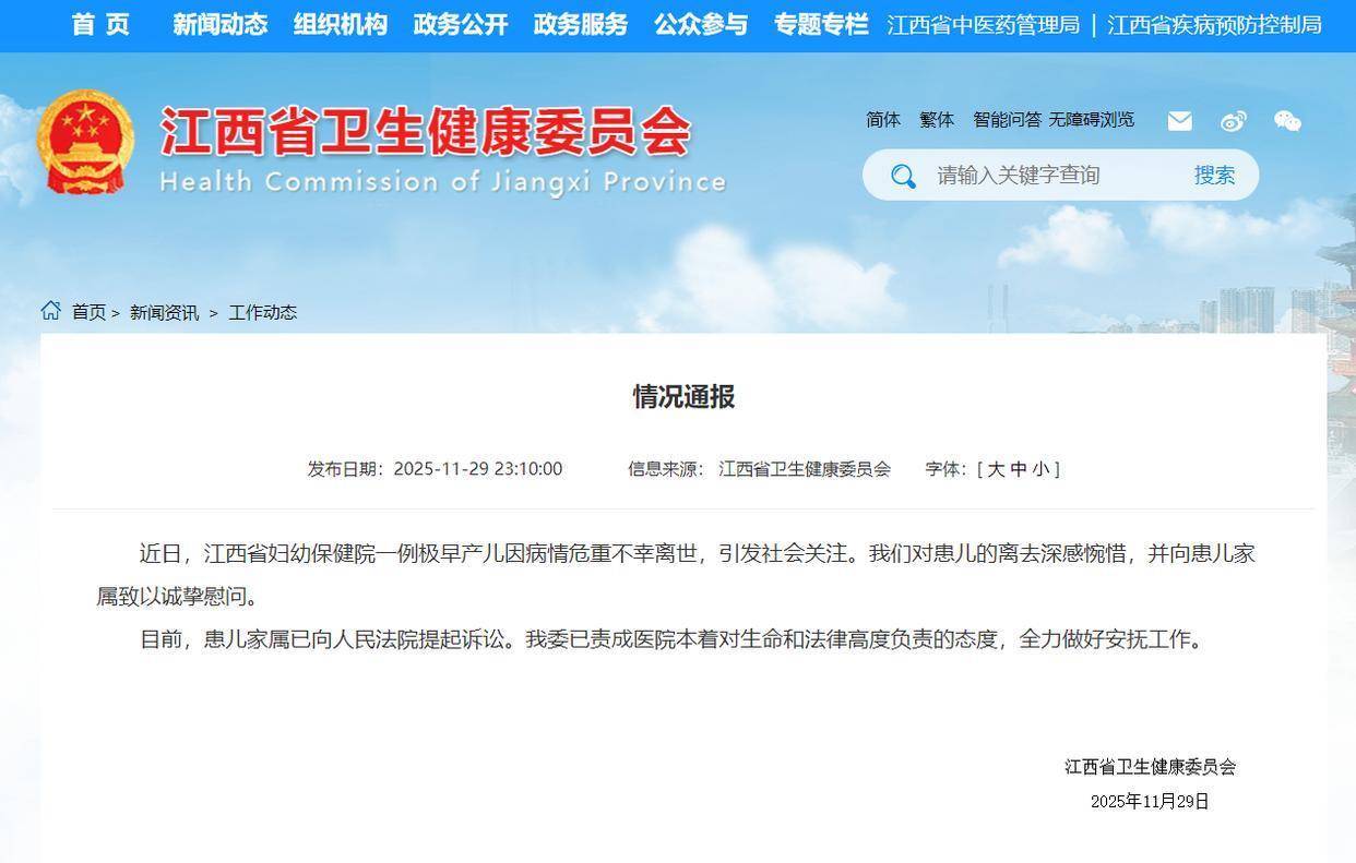 近日,江西省妇幼保健院一例极早产儿因病情危重不幸离世,引发社会关注。我们对患儿的离去深感惋惜,并向患儿家属致以诚挚慰问。